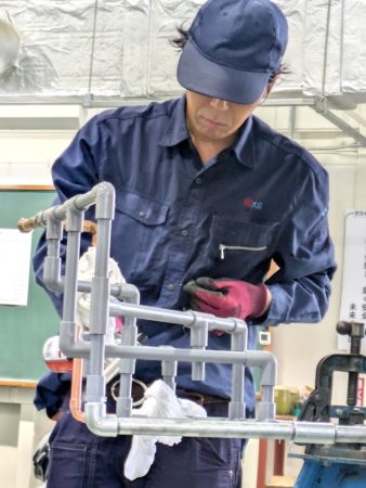 気温が低い中での開催でしたが、参加者全員が汗をかくほど集中し、真剣な表情で取り組んでいた姿がとても印象的でした。見守りながら、私自身も若い頃に配管技術を学んでいた日々を思い起こしました。