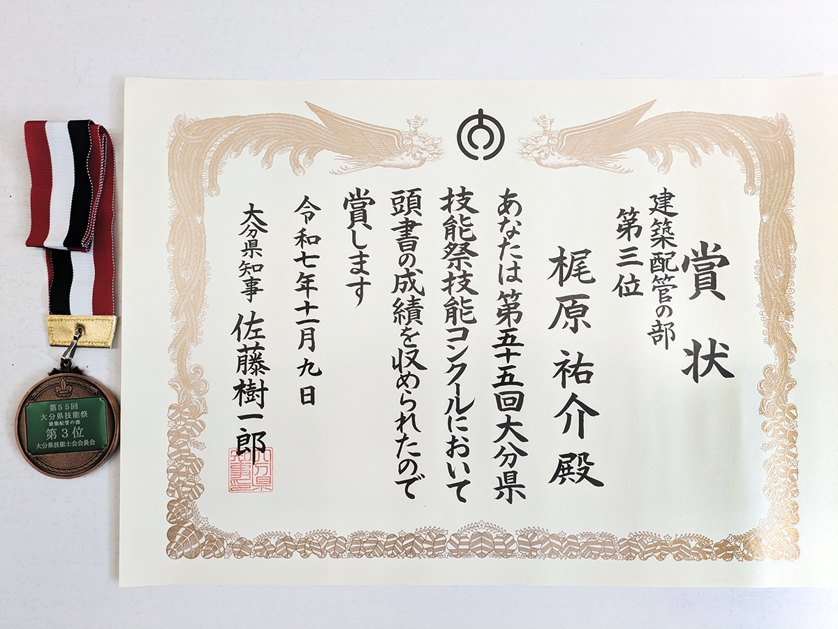 大分県技能祭 建築配管技能コンクールにて第3位入賞!